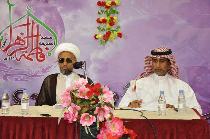 جاء ذلك خلال ندوة بعنوان: الثقافة وأثرها في الاستقرار الأسري، في مسجد الصديقة الزهراء بصفوى الأحد 25/ 12/ 1435هـ الموافق 19/ 10/ 2014م، بمناسبة ذكرى المباهلة.