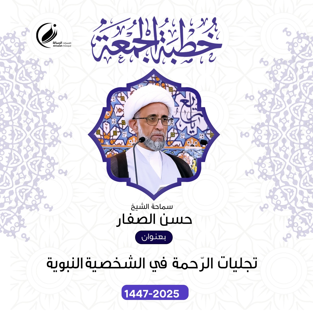 جاء ذلك ضمن خطبة الجمعة 13 ربيع الأول 1447هـ الموافق 5 سبتمبر 2025م، في مسجد الرسالة بالقطيف شرقي السعودية بعنوان: تجليات الرّحمة في الشخصية النبوية.
