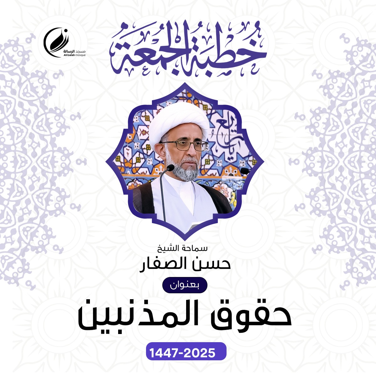 جاء ذلك ضمن خطبة الجمعة 16 جمادى الأولى 1447هـ الموافق 7 نوفمبر 2025م، في مسجد الرسالة بالقطيف شرقي السعودية بعنوان: حقوق المذنبين.